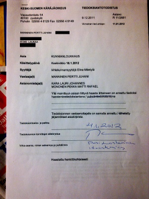 Kunnianloukkaus-käräjät 18.1.2012 klo 10.30 Lue! |