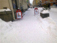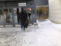 Sanomamobi.fi - 2012/01/14 - 24 kuvaa. Lunta, taidetta, rompetta, vaaleja ja koirantossut. Kuvia lauantaina 2012-01-14 klo 11-15. Keski-Suomi. Jyväskylä. Tourujoki - Rajakatu - Harjukatu - Paviljonki - Irish Bar - Aalto-sali - Våinönkatu. 1. Tourujoki on jäätynyt. 2. "Liskopatsas", Kari Allonen, ammattikorkeakoulun jaAlvar Aallon suunnitteleman ensimmäisen (?) asuinkerrostalon kupeessa. 3. Kauppamiesten näköispatsas. 4. Harjun kioski on muuttunut kioski "55":ksi koulukompleksin vierellä. 5. Jyväskylän Paviljonki ja korkeutensa saavuttanut Sokos-hotelli. 6. Sisään.7. Teuvo Hakkarainen hymyilee aulassa keskustelun välistä, pyynnöstä. 8. Rompepäivät vetävät väkeä niin, että on erehtyä sinne. 9. Toimi Kankaanniemikin on saapunut Timo Soinin puhetilaisuuteen. 10. Yleisön joukossa on julkinen Pekka Haaviston, "kakkosen", kannattaja. 11. Pieni kuulija ei innostu Soinin puheesta, jossa tämä mm. kertoo menettäneensä ulkoministerin tai valtiovarainministerin paikan pitäessään kiinni periaatteistaan. 12. Pentti Varkila soittaa huuliharpullaan "Finlandian" tilaisuuden alussa. Soini istuu ja Anitta Kangas seisoo. Paikalla on varmaankin parisataa kuulijaa, kun nonstop-kävijätkin lasketaan mukaan. 13. Paviljongin yläaulassa kahvittelusta tullessa törmää Jaakko Valon vuonna 2006 valmistuneeseen "Kulta-aikaan", vaneri, akryyliväri ja lyöntikulta.14. Rompetorilta Isä on löytänyt kaipaamansa pakoputken. 15. Irish Barin lämpöisessä tunnelmasssa voi vain muistella, kuinka lämmintä ulkoterassillakin kerran kesällä oli kun siellä nyt talven viima puhaltelee. 16. OHOH- ILTASANOMAT repäisee ainakin kunnon otsikot, kun se taas kiihdyksissään unohtaa "tutkimuksen" virhemarginaalit! 17. Paavo Lipposen vaalimainokset lumessa Aalto-saliin houkuttelemassa. 18. "On the Sunny Side of the Street" vain soluu taitureiden esittämänä, pianisti Marian Petrescu ja basisti Mihai Petrescu. Sali on täynnä, ylhäällä parvella on kyllä hyvin tilaa myöhästyneellekin. 19. Puolueen puheenjohtaja, valtiovarainministeri Jutta Urpilainen kehuu Paavo Lipposta ja muistuttaa kuinka gallupit nujerrettiin viime eduskuntavaaleissa. "Tasavallan presidentin virka ei ole mikään ulkosuhteiden harjoittelupaikka". 20. Kahvia tarjoilemassa ihan samannäköinen nuori nainen, joka Asunnottomien yön iltatunneilla tarjoili hernekeittoa ulkona Kompassin nurkilla viime syksynä. 21. Kahvijonot. 22. Rompetorilta tai sitten muualta tullut sivuvaunuilija pyörähtää Väinönkadulla. 23. Pieni koira näkee toisen pienen koiran kadun aurinkoisella puolella. 24. Söpöliinille on laitettu töppöset jalkaan tässä kahdeksan asteen pakkasessa, joka tuntuu kovin kylmältä viimaisina hetkinä. - Mobikuvat: Pertti Manninen. - TOP 20 Joulukuu 2011 - Ylen mahdoton tulos. Gallup julkaistaan ikäänkuin ehdokkat eivät saisi 100 prosenttia hyväksytyistä äänistä! TÄNÄÄN ENNAKKOÄÄNESTYKSEN ALKAESSA YLEN RADION VAALIASIANTUNTIJA SAMI BORG KERTOO ... - KAUPPALEHDEN PARETSKOIN KOLUMNI. - Sauli Niinistö, Paavo Lipponen, Paavo Arhinmäki. - Kuva. Vaikea valinta. - 2012 Presidentínvaalit Ennustukset: Pressa 2012 ennustus lokakuun alussa. Pressa 2012 ennustus joulukuun alussa. - Kunnianloukkaussyyte käsitellään keskiviikkona 18.1.2012 klo 10.30 - Pertti Manninen, xxxxx xxxxxxx, xxxxx xxxa, Keski-Suomen käräjäoikeus - Presidentinvaalit 2012 - Julisteet tänään katukuvassa. Kuva: " 2, 3, 4, 5, 6, 7 tai joku muu". - Kuvat. "01.01.2012". - "The Jazzman" Kuva. - "Kiven hehku". Kari Alonen 2010. -- Lukijan kuva: "Katso tuolla on Hakkarainen!" - Kuva. Käden ojennus. Karuselli. - lauantai 14.01.2012 - etusivu - Nettisanomat - Sanomanetti - Blogi: Viikkosanomat.fi - Kuvasanomat - Sanomatori - Viikkosanomat - Härkää sarvista Kari Allonen, Alvar Aaltp, Jaakko Valo, Pentti Varkila, Anitta Kangas, Timo Soini, Pekka Haavisto, Paavo Lipponen, Jutta Urpilainen, Ilta-Sanomat, gallup, Sami Borg, Paretskoi, Kauppalehti, Yle, Gallup, Presidenttiehdokkaat, julisteet, katu. Uusi vuosi - saalis - siivet - Nilakka - hämärtyvä ilta. Kunnianloukkaus, Nettisanomat, Ppätoimittaja, xxxxx xxxxxxx, asianajaja, xxxxx xxxa, Nordea Pankki, myyntipäällikkö. |