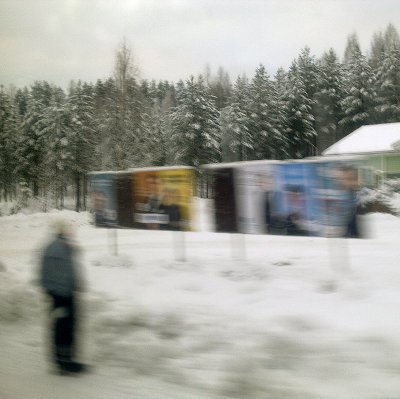 Sanomamobi.fi - 2012/01/15 - Ilta-Sanomien presidenttigallup on täyttä humpuukia. Kaikki tulokset on esitelty röyhkeästi väärin. Virhemarginaalit on unohdettu. 14.01.2012. -24 kuvaa. Lunta, taidetta, rompetta, vaaleja ja koirantossut. Kuvia lauantaina 2012-01-14 klo 11-15. Keski-Suomi. Jyväskylä. Tourujoki - Rajakatu - Harjukatu - Paviljonki - Irish Bar - Aalto-sali - Våinönkatu. 1. Tourujoki on jäätynyt. 2. "Liskopatsas", Kari Alonen, ammattikorkeakoulun jaAlvar Aallon suunnitteleman ensimmäisen (?) asuinkerrostalon kupeessa. 3. Kauppamiesten näköispatsas. 4. Harjun kioski on muuttunut kioski "55":ksi koulukompleksin vierellä. 5. Jyväskylän Paviljonki ja korkeutensa saavuttanut Sokos-hotelli. 6. Sisään.7. Teuvo Hakkarainen hymyilee aulassa keskustelun välistä, pyynnöstä. 8. Rompepäivät vetävät väkeä niin, että on erehtyä sinne. 9. Toimi Kankaanniemikin on saapunut Timo Soinin puhetilaisuuteen. 10. Yleisön joukossa on julkinen Pekka Haaviston, "kakkosen", kannattaja. 11. Pieni kuulija ei innostu Soinin puheesta, jossa tämä mm. kertoo menettäneensä ulkoministerin tai valtiovarainministerin paikan pitäessään kiinni periaatteistaan. 12. Pentti Varkila soittaa huuliharpullaan "Finlandian" tilaisuuden alussa. Soini istuu ja Anitta Kangas seisoo. Paikalla on varmaankin parisataa kuulijaa, kun nonstop-kävijätkin lasketaan mukaan. 13. Paviljongin yläaulassa kahvittelusta tullessa törmää Jaakko Valon vuonna 2006 valmistuneeseen "Kulta-aikaan", vaneri, akryyliväri ja lyöntikulta.14. Rompetorilta Isä on löytänyt kaipaamansa pakoputken. 15. Irish Barin lämpöisessä tunnelmasssa voi vain muistella, kuinka lämmintä ulkoterassillakin kerran kesällä oli kun siellä nyt talven viima puhaltelee. 16. OHOH- ILTASANOMAT repäisee ainakin kunnon otsikot, kun se taas kiihdyksissään unohtaa "tutkimuksen" virhemarginaalit! 17. Paavo Lipposen vaalimainokset lumessa Aalto-saliin houkuttelemassa. 18. "On the Sunny Side of the Street" vain soluu taitureiden esittämänä, pianisti Marian Petrescu ja basisti Mihai Petrescu. Sali on täynnä, ylhäällä parvella on kyllä hyvin tilaa myöhästyneellekin. 19. Puolueen puheenjohtaja, valtiovarainministeri Jutta Urpilainen kehuu Paavo Lipposta ja muistuttaa kuinka gallupit nujerrettiin viime eduskuntavaaleissa. "Tasavallan presidentin virka ei ole mikään ulkosuhteiden harjoittelupaikka". 20. Kahvia tarjoilemassa ihan samannäköinen nuori nainen, joka Asunnottomien yön iltatunneilla tarjoili hernekeittoa ulkona Kompassin nurkilla viime syksynä. 21. Kahvijonot. 22. Rompetorilta tai sitten muualta tullut sivuvaunuilija pyörähtää Väinönkadulla. 23. Pieni koira näkee toisen pienen koiran kadun aurinkoisella puolella. 24. Söpöliinille on laitettu töppöset jalkaan tässä kahdeksan asteen pakkasessa, joka tuntuu kovin kylmältä viimaisina hetkinä. - Mobikuvat: Pertti Manninen. - TOP 20 Joulukuu 2011  - Ylen mahdoton tulos. Gallup julkaistaan ikäänkuin ehdokkat eivät saisi 100 prosenttia hyväksytyistä äänistä! TÄNÄÄN ENNAKKOÄÄNESTYKSEN ALKAESSA YLEN RADION VAALIASIANTUNTIJA SAMI BORG KERTOO ... - KAUPPALEHDEN PARETSKOIN KOLUMNI.  - Sauli Niinistö, Paavo Lipponen, Paavo Arhinmäki. - Kuva.  Vaikea valinta. - 2012 Presidentínvaalit Ennustukset: Pressa 2012 ennustus lokakuun alussa. Pressa 2012 ennustus joulukuun alussa. - Kunnianloukkaussyyte käsitellään keskiviikkona 18.1.2012 klo 10.30 - Pertti Manninen, xxxxx xxxxxxx, xxxxx xxxa, Keski-Suomen käräjäoikeus - Presidentinvaalit 2012 - Julisteet tänään katukuvassa. Kuva: " 2, 3, 4, 5, 6, 7 tai joku muu". -  Kuvat. "01.01.2012". -  "The Jazzman" Kuva. - "Kiven hehku". Kari Alonen 2010. -- Lukijan kuva: "Katso tuolla on Hakkarainen!" - Kuva. Käden ojennus. Karuselli. - lsunnuntai 15.01.2012 - etusivu - Nettisanomat - Sanomanetti - Blogi: Viikkosanomat.fi - Kuvasanomat - Sanomatori  - Viikkosanomat - Härkää sarvista  Kari Allonen, Alvar Aalto, Jaakko Valo, Pentti Varkila, Anitta Kangas, Timo Soini, Pekka Haavisto, Paavo Lipponen, Jutta Urpilainen, Ilta-Sanomat, gallup,  Sami Borg, Paretskoi, Kauppalehti, Yle, Gallup, Presidenttiehdokkaat, julisteet,  katu. Uusi vuosi - saalis - siivet - Nilakka - hämärtyvä ilta. Kunnianloukkaus, Nettisanomat, päätoimittaja, xxxxx xxxxxxx, asianajaja, xxxxx xxxa, Nordea Pankki, myyntipäällikkö.