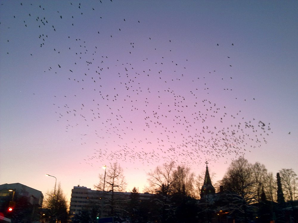![]() "Naakat pyörivät hämärtyvässä pakkasillassa pientä piiriään." Keski-Suomi. Jyväskylä. Kirkkopuisto. Tiistai 2012-02-07 klo 17.00. Mobikuva: Pertti Manninen. |
